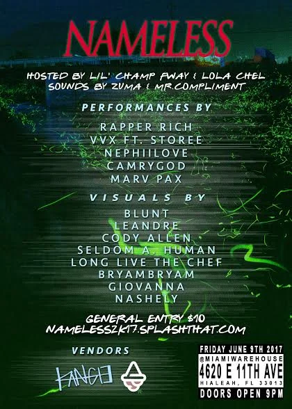A multimedia arts event at the Miami Warehouse featuring 5 performing artist, 7 visual artists, and 3 to 4 vendors. In between the festivities, there will be games such as N64 and a doodle station.